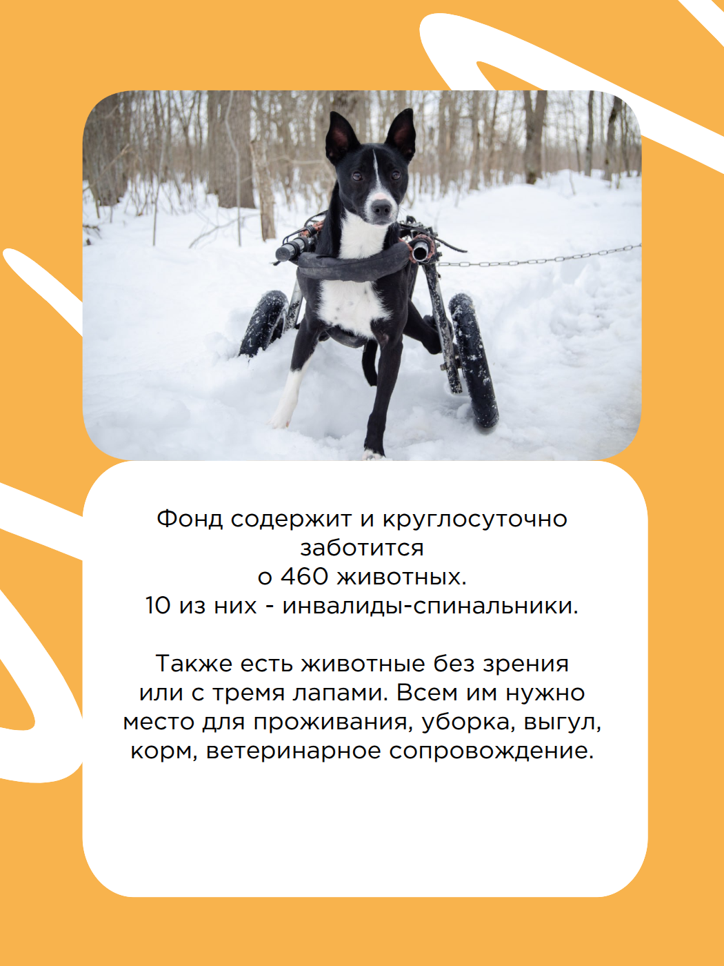 Стараемся не принимать, так как нет мест, ни ресурсов, но иногда невозможно отказать... Сейчас у нас 460 питомцев — это рекорд за всю историю.