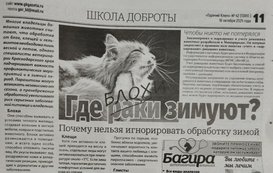 Редакция газеты "Горячий Ключ" помогает нам искать ответственных владельцев для бездомных животных!